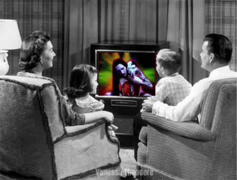 Here’s an animation that I did on a retro photo from the 1950’s of a family gathered around the TV watching the music video for Marilyn Manson’s “Dope Hat” from Portrait of An American Family” album.